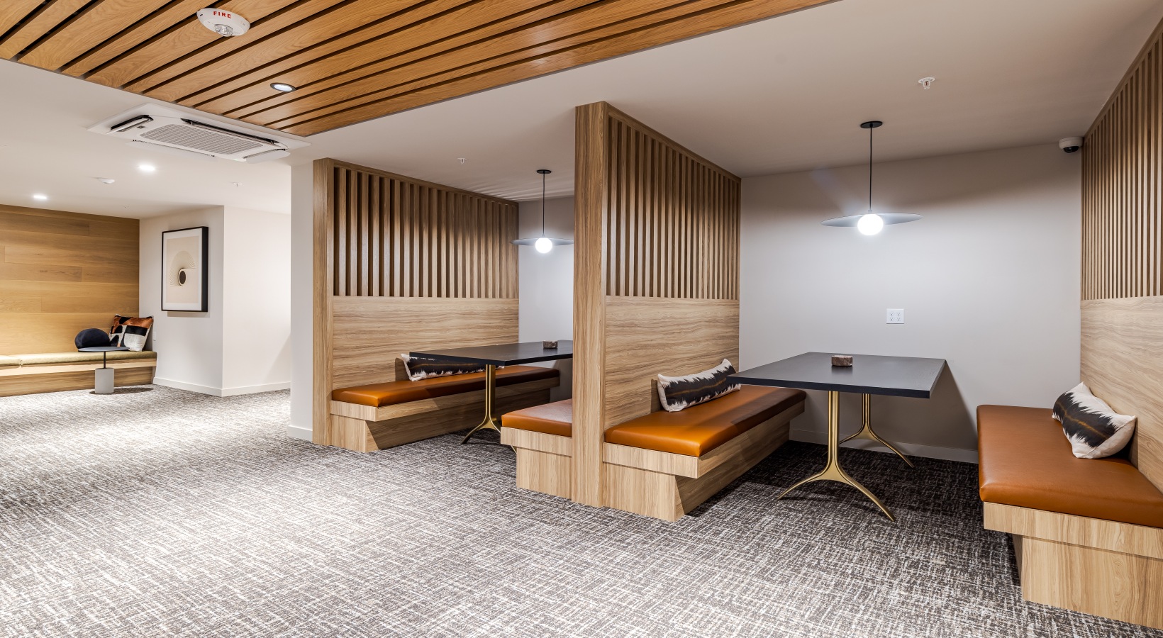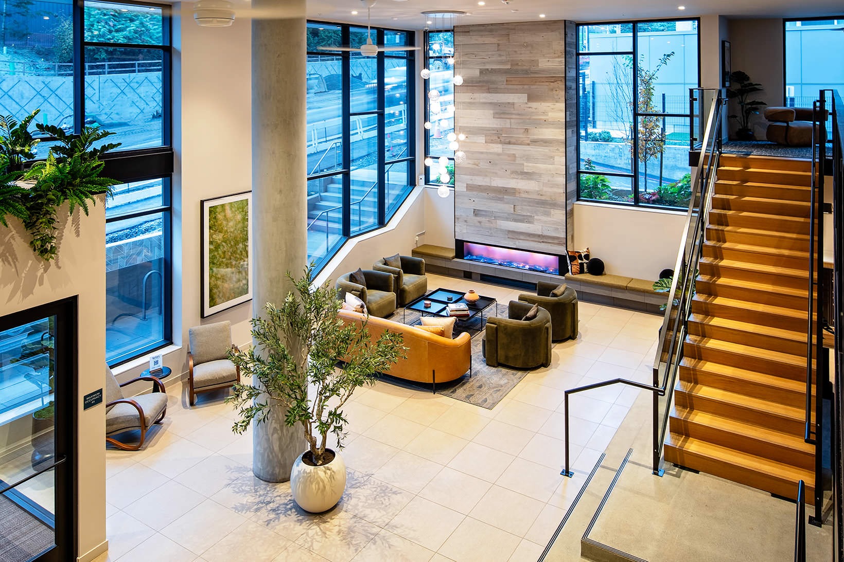 Scene-stealing lounges, contemporary calling cards, roof deck views, hybrid work environments, and various social venues waiting to host. A first-class experience, smooth as velvet.